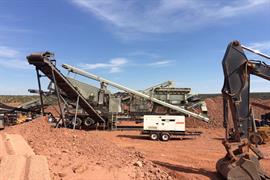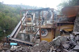 Setting up a portable rock crushing plant